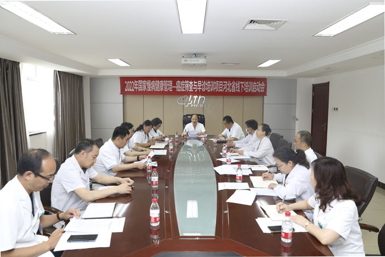7月12日上午,我院召开了“2022年国家慢病健康管理——癌症筛查与早诊培训项目启动会”。党委书记单保恩,党委副书记、院长徐金升,副院长耿翠芝,总会计师魏迎,副院长何宏涛、彭利以及医务处、门诊部、财务处、纪检监察部门、宣传部、工会负责人和各专家组组长参加,会议由徐金升院长主持。