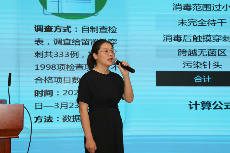 本次活动分为演讲竞赛和讲座两个环节,评委由崔妍老师、护理部主任、副主任和临床静疗护理专家共同组成。参赛选手是两个院区经初赛选拔出的6位护士长。大家从血管通路产品与技术创新、降低外周静脉治疗堵管发生率、外周通路并发症的预防与处理、特殊专科质量控制(放射、儿科、急诊等)、静脉治疗教育培训、专科护士培训等方面进行选题,演讲内容紧贴临床,具有创新性和实用性。