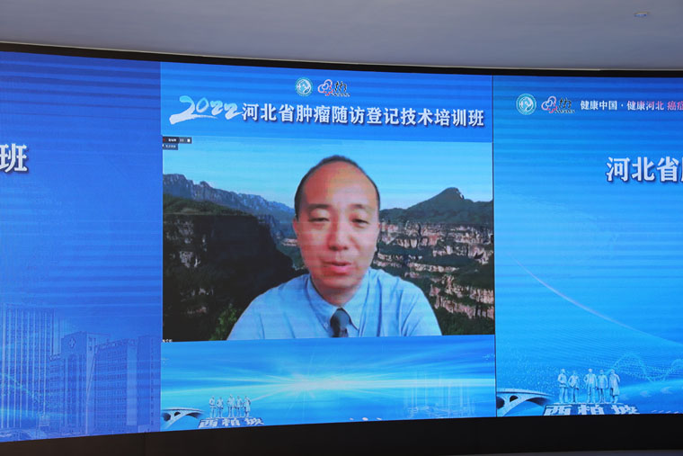 单保恩书记、魏文强主任分别就“河北省肿瘤综合防控40年”和“肿瘤随访登记意义及中国肿瘤随访登记进展”做了演讲。国家癌症中心肿瘤登记办公室张思维教授、曾红梅教授和陈茹副研究员分别以“人群肿瘤登记处的建立与实施”、“人群肿瘤登记数据的生存分析”和“肿瘤登记数据上报要求及质量控制”为题做了授课和培训。贺宇彤教授和北京肿瘤防治办公室主任王宁教授分别就“河北省肿瘤随访登记工作总结及2022年工作安排”和“肿瘤登记随访工作方案解读”做了报告和方案解读。我院病理科主任刘月平教授和病案室随访中心徐小莉老师分别就“肿瘤登记工作病理相关知识解读”和“医院肿瘤数据采集和随访实践”做了授课。河北省肿瘤防治办公室李道娟医师和刘言玉医师分别就“肿瘤随访登记质量控制及数据审核问题”和“中国肿瘤登记平台简介及使用方法”做了技术指导。石家庄市疾控中心慢性病防治所马新颜教授、邯郸市疾控中心慢性病防制科科长王建蕊教授和磁县肿瘤防治所所长宋国慧教授主持以上活动。