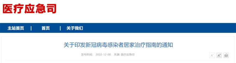 按照进一步优化落实疫情防控措施有关要求,为有效做好新冠病毒感染者居家治疗相关工作,切实维护人民群众生命安全和身体健康,我们组织制定了《新冠病毒感染者居家治疗指南》。现印发给你们,请参照执行。