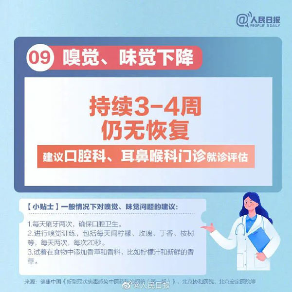 新冠转阴后常有呼吸急促、咳嗽、乏力、失眠、疼痛、心悸、声音问题、吞咽问题、味觉嗅觉失灵等