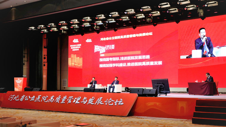 为贯彻“十四五”规划,深入实施“健康中国”战略,助推我省公立医院整体进入高质量发展阶段,318日,由我院主办的“河北省公立医院高质量管理与发展论坛”在石家庄召开。中国抗癌协会理事长樊代明,河北省医疗保障局党组书记、局长赵新喜,河北省卫生健康委副主任高丽君,我院党委书记单保恩出席会议并致辞。来自全国多个省、市医疗卫生机构、综合医院、专科医院的党委书记、院长、管理者、相关领域专家教授及500余位业内同行齐聚一堂、共话高质量发展。
