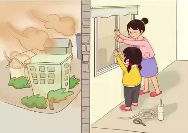 ①及时关闭好门窗,必要时可以用胶条密封住门窗,防止沙尘进入室内。