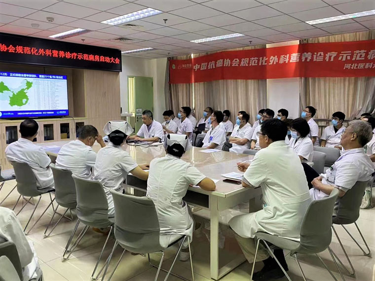 2021年底,规范化外科营养诊疗示范病房项目由中国抗癌协会肿瘤营养专业委员会启动,覆盖全国25个省、市、自治区,于2022年7月在全国开始申报工作。我院外三科积极响应,加入该项目建设,在科主任范立侨教授的带领下,全科医务人员以示范病房项目实施流程及考评细则、外科患者营养诊疗标准流程SOP、外科患者标准化营养教育为题,对全科医护人员培训,邀请营养科高淑清主任共同讨论实施方案和分阶段落实项目建设计划。