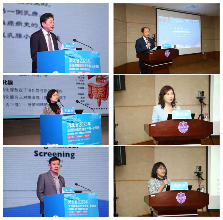 4月19-20日,由河北省卫生健康委员会主办,河北省肿瘤防治办公室、河北省抗癌协会及我院联合承办的“河北省2023年全国肿瘤防治宣传周”系列活动之“走进铁路”“走进学校”在石家庄铁路文化宫和河北医科大学西教学楼报告厅以科普讲座的形式举行。河北省肿瘤防治办公室主任、我院党委书记单保恩教授带领专家团倾情授课,深入践行“癌症防治 全面行动——全人群 全周期 全社会”的主题内涵。
