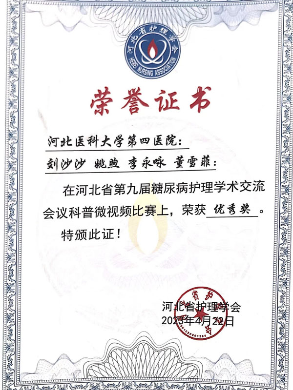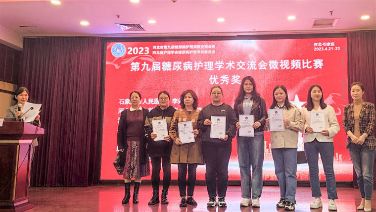 4月21-22日,我院内分泌科8名护理人员创作的3个微视频在河北省第九届糖尿病护理学术交流会议科普微视频比赛中喜获佳绩,其中二等奖1名、优秀奖2名,彰显了我院护理人员在糖尿病护理领域的科普综合能力。河北省护理学会糖尿病专委会顾问、我院内分泌科刘月芹老师出席并授课,与参会嘉宾就糖尿病合并肿瘤患者的血糖管理深入交流,为肿瘤患者的血糖管理给予指导。