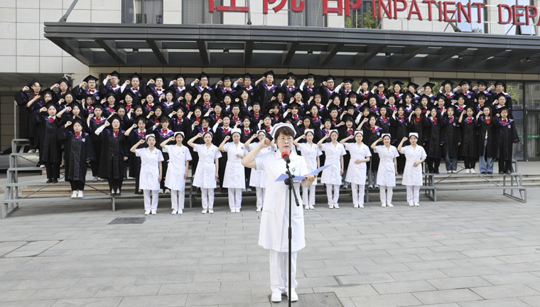 6月6日上午,我2023届护理、助产专业毕业纪念仪式在本部新医技病房楼南广场举行,全体院领导及护理部、护理教学办公室成员和毕业学生参加。