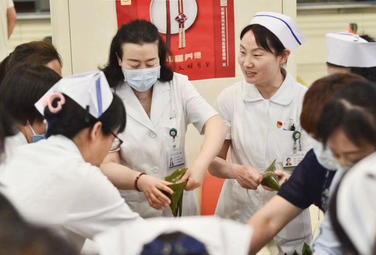 我院党委书记单保恩与党委副书记、纪委书记李晓玲在现场向大家致以节日的问候与祝福,同时对我院职工平时工作的奉献与付出给予充分肯定与鼓励,并亲自动手包起粽子,和大家一起感受温馨快乐的节日氛围。
