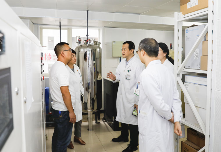 9月27日,赵群副院长带领相关职能部门,对门诊、医技等科室进行检查。他们一行首先对检验科改造后的消防、用电、用水等安全设施进行了全面检查,现场商讨、制定解决办法,并对检验科新设置的自动采血流程进行督导。赵群副院长表示,检验科在现有条件下积极探索改进患者就诊流程的尝试,值得肯定,希望继续做好改进工作。