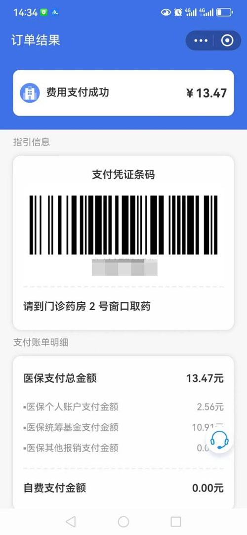 确认费用,选择“医保支付”后,系统就会自动跳转至医保电子凭证授权界面,授权后展示医保报销金额,点击支付后即可完成支付。