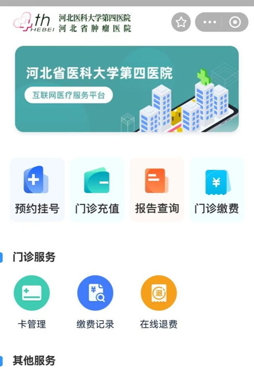 在支付宝小程序里搜索“河北医科大学第四医院”。