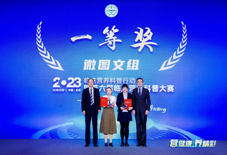 近日,由中国医师协会营养医师专业委员会举办的“第六届临床营养科普大赛”全国总决赛在北京举行,我院临床营养科尤奕的作品《围手术期你吃对了吗——消化道肿瘤篇》荣获微图文组一等奖;张之晗、成月、景然、徐腊梅、尤奕的团队作品《眼见不为实》荣获视频组二等奖。