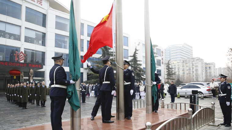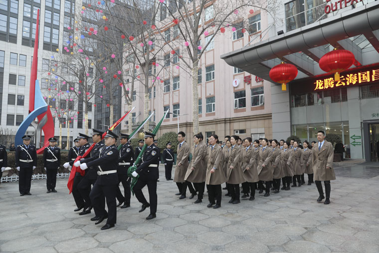 全体院领导向大家拜年,表达美好祝愿。随后,两院区在前庭广场举行了隆重的升国旗、升院旗仪式。