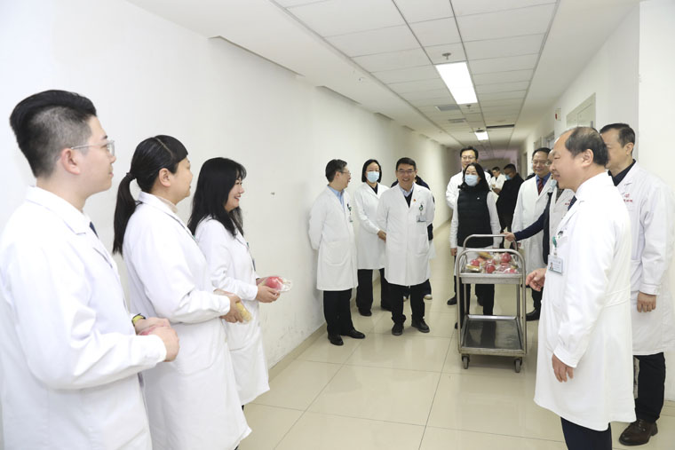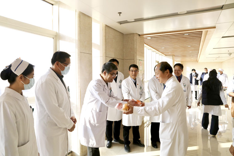 “大家辛苦了”“给大家拜年了”……2月9日,在除夕夜来临之际,我院党政领导单保恩、李晓玲、赵群、何宏涛、彭利、田晓玲、田子强、马景涛带领相关职能部门负责人,在两院区看望慰问坚守岗位的广大职工,向奋战在一线、倾心服务患者的医务人员表示衷心感谢,送上诚挚的新春祝福和慰问品。