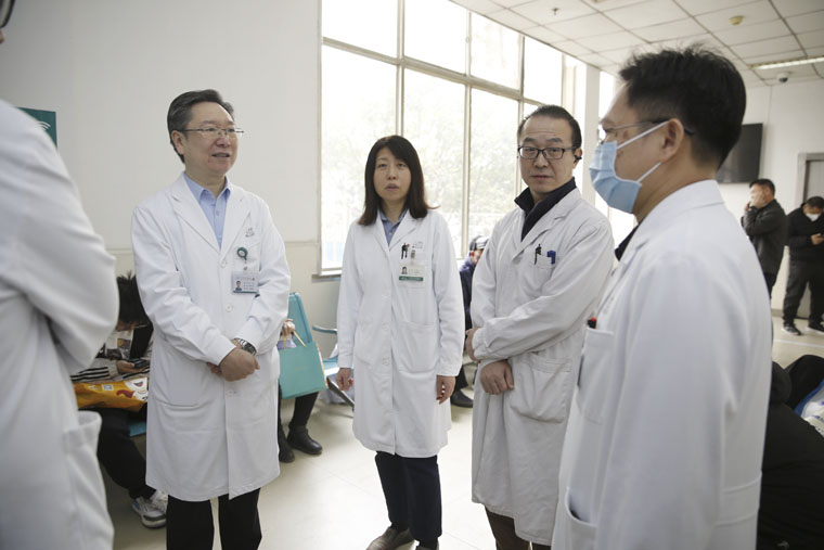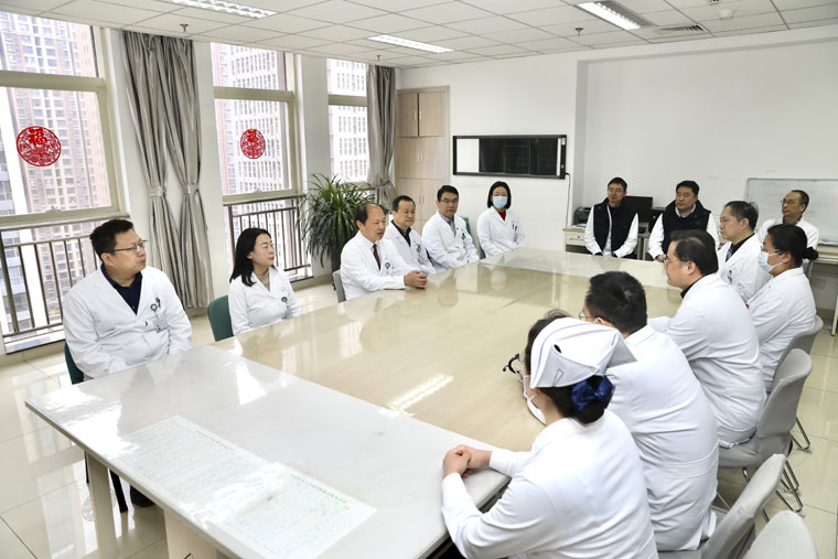“给大家拜年啦”,每到一个科室,院领导都向医务人员致以新春问候和真挚祝福,详细了解各科室节后工作安排和当下运营情况,对节日期间坚守岗位的职工表示感谢,同时从医疗、教学、科研、管理等多个方面出发,根据不同科室发展特色,有针对性地提出新期望、树立新目标。