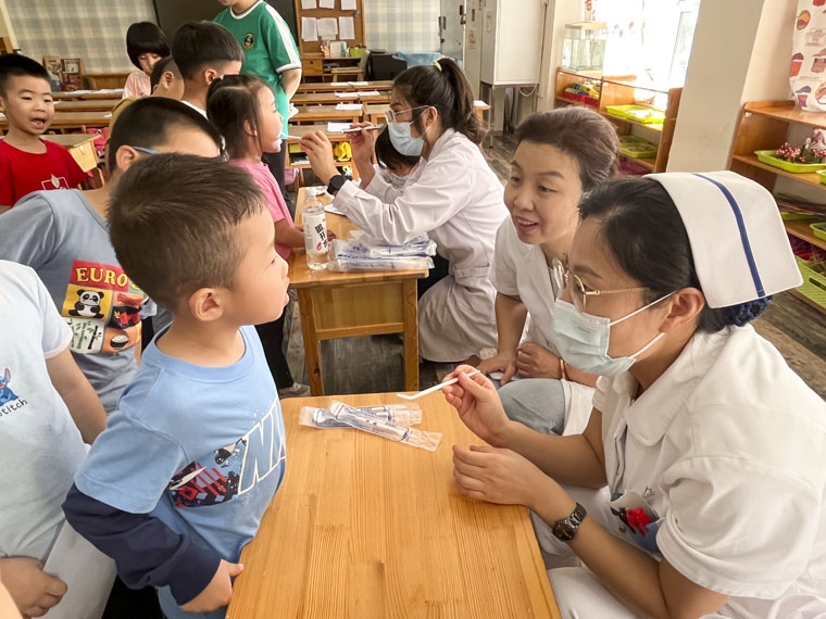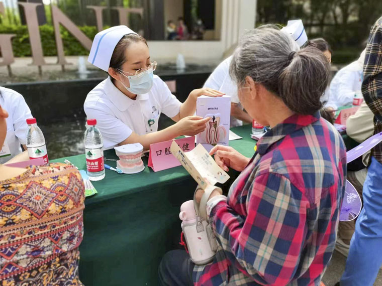 团队不忘初心,弘扬“博爱”精神,将宣传口腔保健知识为己任,积极进社区、入校园,每年开展系列义诊宣教活动。在活动现场,护理人员义务为群众检查口腔、示范正确刷牙方法、教孩子们唱刷牙歌、发放爱牙宣传资料等,运用生动实际的语言,将口腔保健知识与生活细微之处紧密结合,有效提高了大众口腔预防保健意识,帮助越来越多的群众做到早预防、早诊断、早治疗,让口腔疾病远离健康生活。