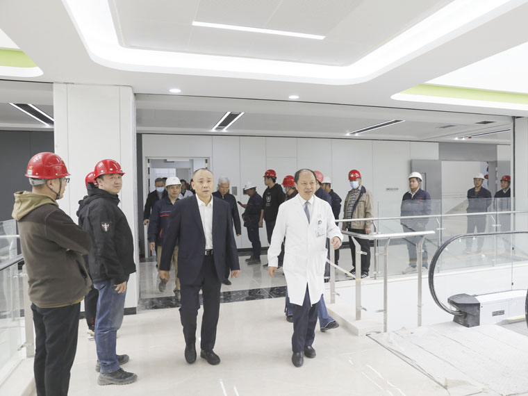 校领导一行重点参观调研了河北省癌症中心大楼建设项目,对大楼广场、门诊大厅、病房、手术室、ICU、介入中心、加速器等处实地踏勘,听取项目的整体规划和建设进展汇报,详细询问各项工作落实情况。校领导表示,要以大楼即将启用为重要契机,进一步拓展办院空间,带动医院临床诊疗和科研创新实现新跨越,提升医疗综合服务能力和辐射带动作用。