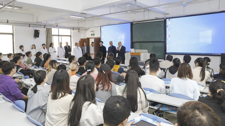期间,校领导一行先后来到东院区血液内科病房、乳腺中心病房、临床药理研究部、科研中心调研,并走进2021级麻醉本科班,面对面与同学们亲切交流,在大家精心准备的明信片上签字寄语。