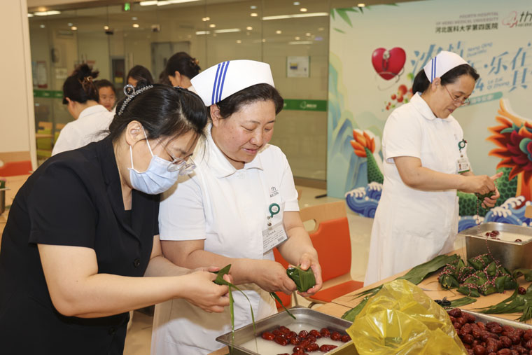 为弘扬中华民族传统文化,丰富职工的精神生活,在中华民族传统节日“端午节”到来之际,我院工会在两院区举办了“浓情端午 乐在其‘粽’”主题包粽子活动。党委书记单保恩,党委副书记、纪委书记李晓玲和副院长彭利携手百余位职工们热情参与。