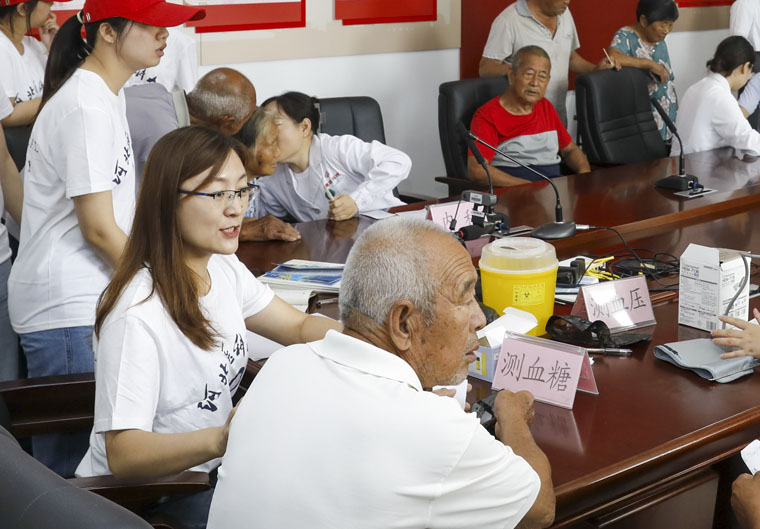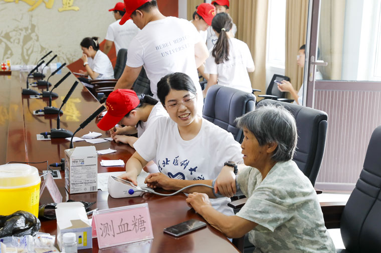 当日清晨,服务团迎着朝霞,踏上了这次富有意义的实践之旅。到达北庄村后,大家迅速进入工作状态,细致入微地为村民们检查身体,详细询问病史,并针对性给出治疗建议。团干部和学生志愿者们积极参与其中,协助进行测量血压、血糖,发放药品,并用通俗易懂的语言向村民们普及常见疾病的预防和治疗知识。本次义诊共服务当地群众100余人次,得到一致称赞。