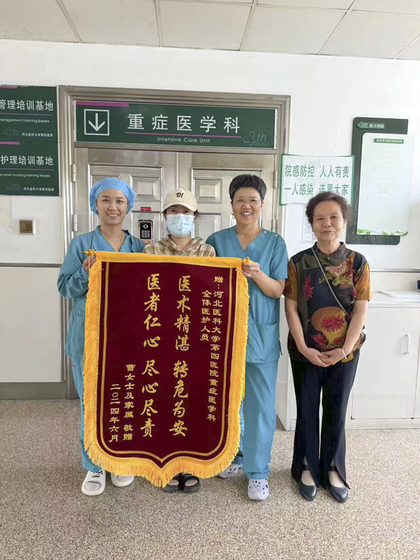 朱桂军主任及赵钗主任医师带领ICU团队为患者实施了经口气管插管及呼吸机辅助治疗,与神经内科紧密合作,多次调整治疗方案。在继续给予患者激素治疗、营养神经药物促进神经功能恢复的同时,还积极给予间断血浆置换及连续性肾脏替代治疗。在多科室医护人员齐心努力下,疾病逐渐稳定,患者出现了好转迹象。几天后,患者神志清楚、肺部感染得到控制、恢复自主呼吸,医护为其拔除人工呼吸管道。期间,重症医学科郭素芝护士长带领团队提供了专业的护理服务与心理关怀,起到了积极的作用。随后,患者转回神经内科继续治疗,不久便能够下地行走,顺利出院。