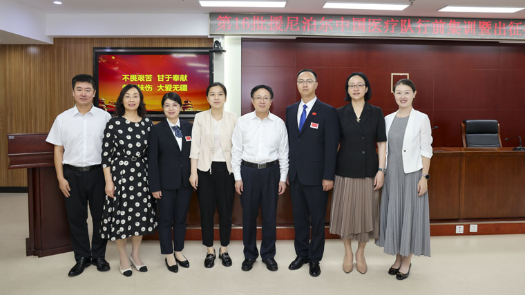 此前,我院为本批医疗队员举行了出征仪式,单保恩书记指出,执行援外医疗工作,意义深远、责任重大,是国家外交工作的重要部分。我院一直把援外医疗作为头等大事来抓,坚持选派政治“硬”、业务“精”、作风“优”的精兵强将参加援外医疗队。他鼓励队员们要有大国情怀,牢记使命、安心工作,以精湛的医术和高尚的医德服务尼泊尔人民。何宏涛副院长和田晓玲副院长也对医疗队提出了具体要求,要遵纪守法、廉洁奉公,保持身心健康,树立崇高的医疗队员形象。医院是援外队员的坚强后盾,随时提供技术支持、团队协助,务必不负国家和省卫健委的重托,致力于把骨髓移植项目打造成经得起历史检验的高品质典范。