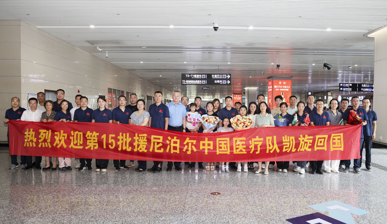 8月6日,由我院派出的河北省第15批援尼泊尔中国医疗队队员血液内科赵桂敏副主任、牛秀然副护士长圆满完成了为期一年援外医疗任务,载誉而归。此前,血液内科副主任医师马光宇、主管护师杨向丹作为河北省第16批援尼泊尔中国医疗队队员接过接力棒,踏上了新的援外征程。