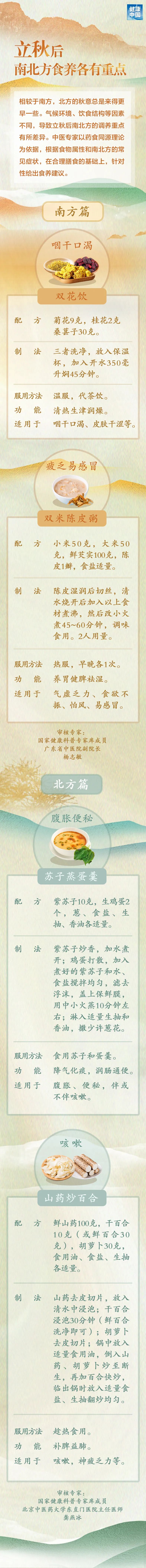 立秋后南北方食养各有重点