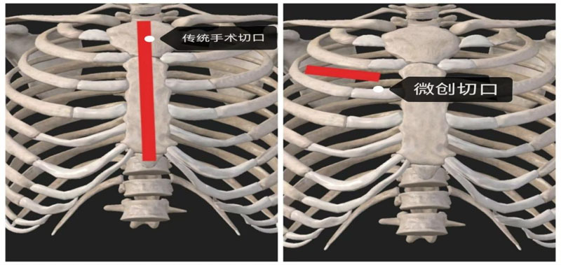 手术当日,心脏血管外科团队按照既定方案为患者行经第二肋间小切口“主动脉瓣和升主动脉置换+冠脉移植术(Bentall术)”。大家紧密协作、精细操作,成功完成各项操作且术中未输血,患者当日拔除气管插管,次日转入普通病房。术后17小时胸部引流仅200ml,恢复良好。相较于传统开放式手术,该项手术切口小、出血少、不断胸骨,避免了许多因大切口对患者产生的生理及心理影响,且术后恢复快,住院时间短,降低了患者花销。