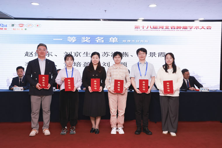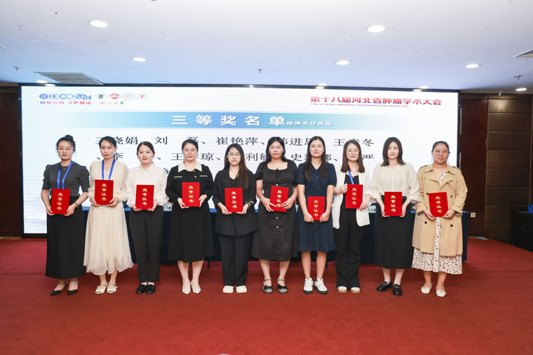 在会议闭幕式上,河北省抗癌协会主要领导为中青年优秀论文获奖人员、优秀论文组稿单位、抗癌明星等颁发证书。
