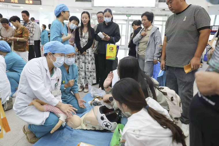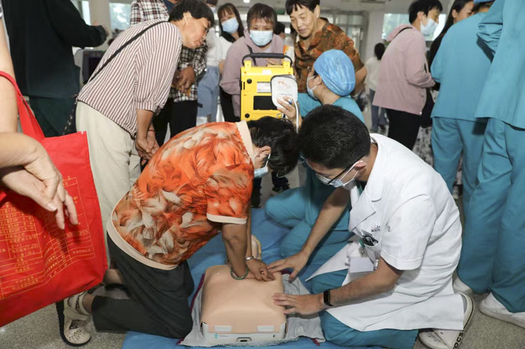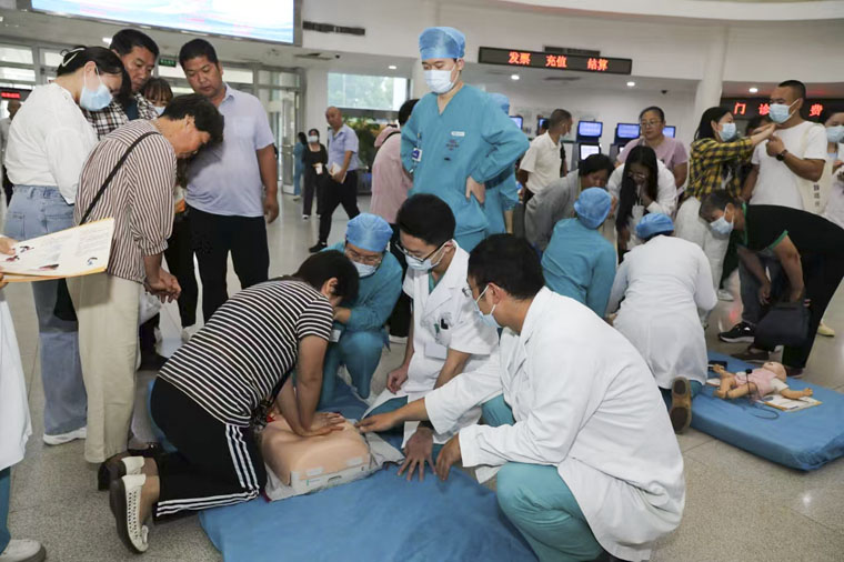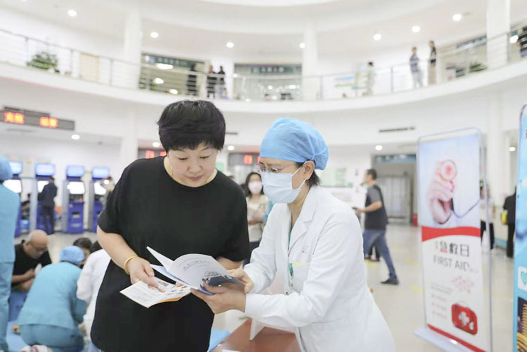 于斌主任医师、李玉护士长等急诊科医护人员,通过生动的讲解,向在场人员演示心肺复苏中的胸外按压及AED技术的操作过程。为让大家更好地掌握这项技能,活动现场还提供了模拟人进行实操练习。在医护人员的指导下,现场人员纷纷上前尝试,通过实际体验加深理解。通过宣传展板内容展示、发放急救知识手册等方式,很多来院就诊患者及家属驻足学习。医护人员耐心为大家解答关于急救的各种问题,引导他们了解急救的基本知识和技能。