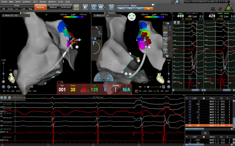 由于患者症状加重,姚铁柱副主任决定尽早为患者行电生理检查+射频消融术。在积极完善术前检查过程中,患者冠脉CTA结果回报:CTA成像符合动脉粥样硬化表现,左前降支中段非钙化斑块伴管腔重度狭窄。姚铁柱副主任再次认真查看患者病例后决定同时行冠脉造影术及心电生理检查+射频消融术。