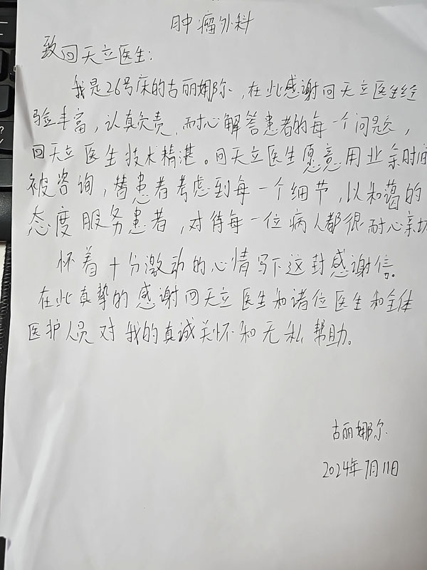 手术的成功,让患者及家属深切感受到医者仁心的关怀与医学技术进步带来的福祉,她们向回天立副主任医师赠送锦旗表达感谢。