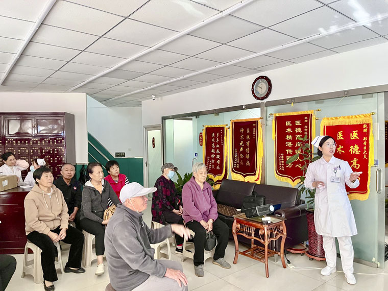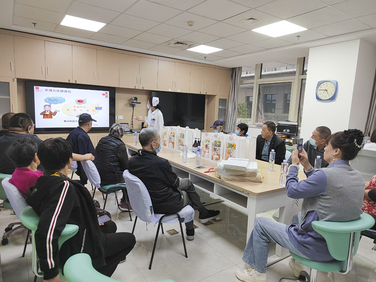 活动伊始,张静主任向在场的老年朋友们致以节日的问候和祝福,并强调了老年健康的重要性。随后,蒋怡芳副主任医师和温丽丽护士长为在场的老年朋友带来了关于老年常见病防治和跌倒预防策略的讲座。她们通过通俗易懂的语言和生动的案例分析,帮助老人们更好地理解和掌握日常健康知识。一位年过八旬的大爷激动地说:“听了专家的讲解,我才知道平时的一些小毛病原来有这么多隐患,以后我得更加注意了。”