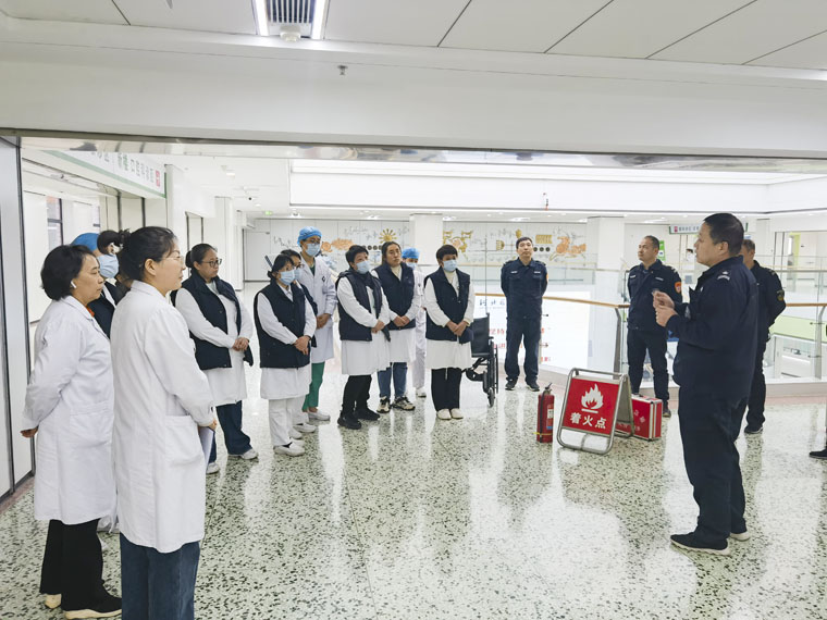 今年全国消防日的主题是“全民消防、安全至上”,为保障我院患者、职工和财产的安全,强化门诊医务人员消防安全意识,近日,围绕冬季消防安全知识和实地操作等内容,门诊部联合保卫处开展了培训和演练。