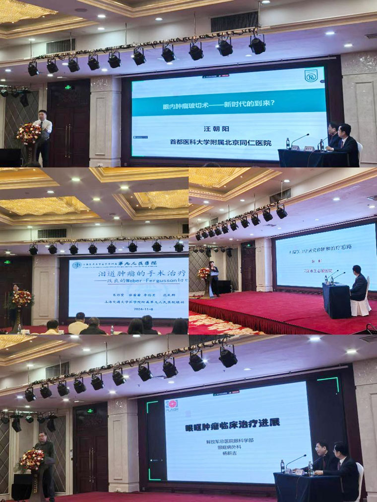 在学术交流环节,北京同仁医院汪朝阳教授以《眼内肿瘤切除术》为主题,带来了新思路新见解;解放军总医院杨新吉教授讲解了《眼眶肿瘤手术入路选择》;上海九院肖彩雯教授以《泪道肿瘤手术治疗》为题,分享了泪道肿瘤的最新诊疗进展;天津市生态城医院的张虹教授讲述了《泪腺区占位病变诊断和治疗思路》,对泪腺区病变的多样性进行深入分析;河北省眼科医院刘立民教授解读了《眼眶血管性肿瘤的诊断和治疗》,强调了眼眶血管性肿瘤的准确识别对于制定治疗方案的重要性;任彦新教授以《梅克尔细胞癌的诊断和治疗》为题,展示了对这一罕见疾病的研究成果;河北医科大学第一医院周忠友教授以《眼眶肿瘤的诊疗思路》为主题,强调多学科合作在眼肿瘤治疗中的重要性。我院郝玉华教授带来了《原发性眼内淋巴瘤》的最新研究成果,张希奎主治医师分享了《眼眶淋巴瘤的诊疗新进展》。
