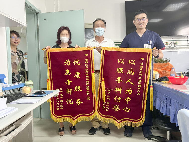 一幅幅感谢的字画,一面面致谢的锦旗,不仅承载着患者沉甸甸的心意,更是对科室和医院充分信任的象征,激励着全体医务人员持续提高医疗服务水平。肿瘤内科始终以守护患者的“身心健康”为初心和使命,将持续深耕“人文关怀”,以更有温度、更高质量的服务,让患者的康复更加温暖有力。