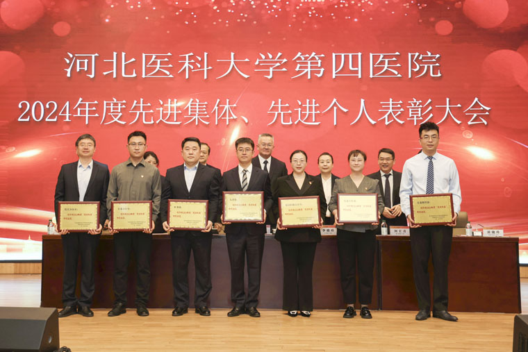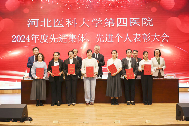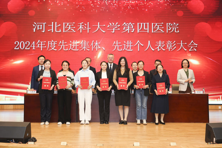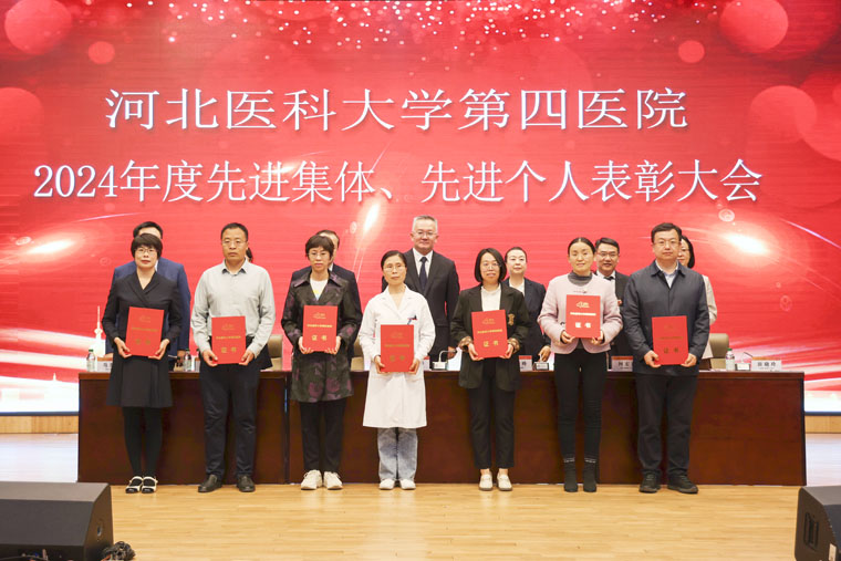 会上,党委副书记、纪委书记李晓玲宣读《中共河北医科大学第四医院委员会关于表彰2024年度先进集体、先进个人的决定》和先进科室名单,副院长赵群宣读优秀医生名单,总会计师魏迎宣读优秀护士名单,副院长田晓玲宣读优秀药技人员、优秀管理人员、优秀党政后勤人员,副院长马景涛宣读我院2024年获得市级以上荣誉称号名单。院领导分别为获奖集体和个人颁奖。