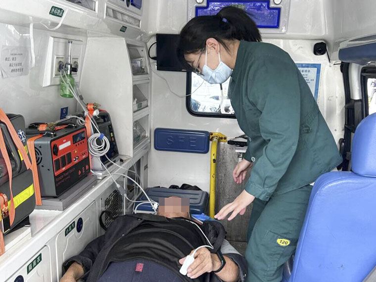 当日上午10时21分,东院区急救站点接到石家庄市急救中心紧急指令:一名49岁男性患者突发肢体无力在家摔倒。由张亚茜医师、王健主管护师、蔡建司机组成的院前急救小组立即出诊,仅用7分钟抵达现场。张亚茜医师通过快速问诊、查体,高度怀疑患者为急性脑血管病发作。“患者当时左侧肢体肌力0级,言语不清,NIHSS评分12分,情况十分危急”。