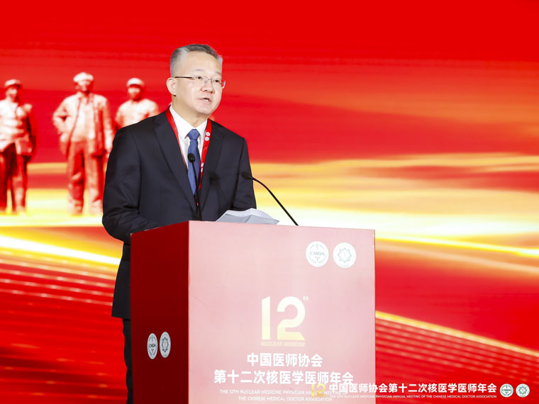 李立平书记指出,近年来,我院在学科建设、人才培养、科研创新等方面取得了显著成绩,多个学科在国内外享有较高的声誉。特别是核医学科,经过核医人的努力奋斗,已经发展成为集医疗、教学、科研为一体的河北省重点学科。他强调,核医学作为一门重要的医学学科,在疾病精准诊断与核素治疗中具有不可替代的作用。随着科技进步和健康需求提升,核医学正面临前所未有的发展机遇。李立平书记勉励广大从业者牢记使命、勇于担当,持续提升专业素养与创新能力,全力推动核医学事业高质量发展。