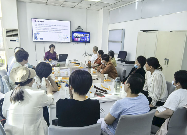 科室主任刘志坤以《肿瘤放疗不良反应与应对》为题,针对放疗常见的皮肤反应、化疗引起的恶心呕吐等副作用,提出个性化应对方案。他演示了放疗区域皮肤护理技巧,叮嘱患者通过冷敷、药物外涂等方式缓解不适。“治疗的过程会有挑战,但我们有方法应对!”