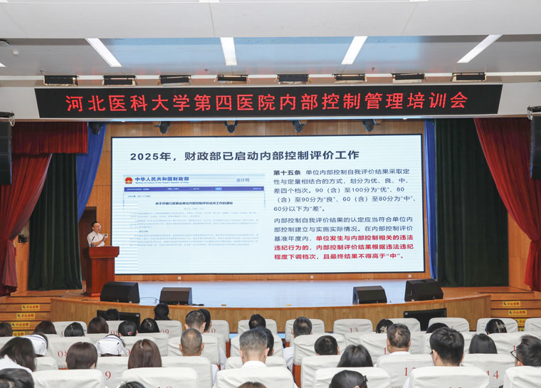 5月16日,我院内部控制体系建设启动会及培训会在本部新医技病房楼报告厅召开,标志着医院内控管理工作迈入系统化、规范化建设新阶段。常务副院长何宏涛讲话,魏迎总会计师主持会议,全院党政职能科室负责人及业务骨干100余人参加。