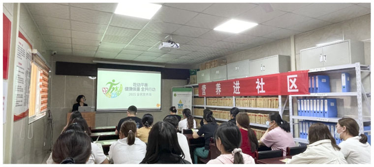 高淑清主任走进石家庄市长安区中山东路社区卫生服务中心,为居民带来“吃动平衡,健康体重”主题讲座。她结合全民营养周核心,剖析体重管理与慢性病预防的关联,通过“膳食宝塔”图文详解科学饮食搭配,针对居民关心的“如何科学选择食物”“避免超重的饮食习惯”“久坐人群如何运动”等问题逐一解答,并发放《河北省肥胖人群食养处方》等宣传资料,助力居民将“吃动平衡”理念融入日常生活,获热烈反响。