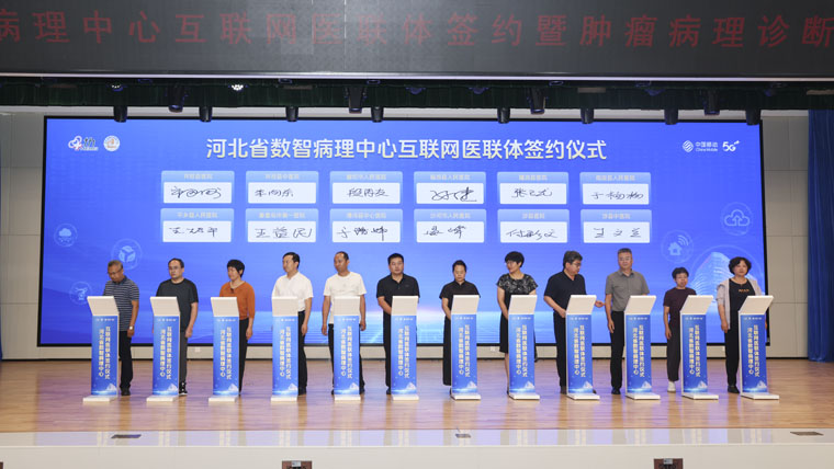 7月11日,河北省数智病理中心互联网医联体签约暨肿瘤病理诊断大模型发布仪式在我院东院区举行。省卫生健康委、省/市医疗保障局、河北医科大学、河北移动等领导,全体院领导,我院职工代表及多家主流媒体,共同见证河北病理领域数智化发展的重要里程碑。