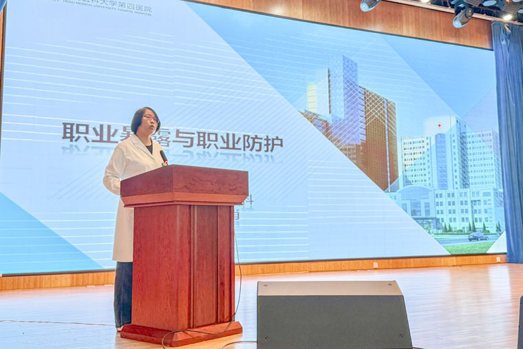 感染管理科主任杨兴肖通过案例介绍了如何做好标准预防、职业防护以及医疗废物管理,重点讲解了职业暴露后的紧急处理流程及预防措施,帮助同学们强化自我防护意识,掌握自我防护技能,筑牢职业安全防线。