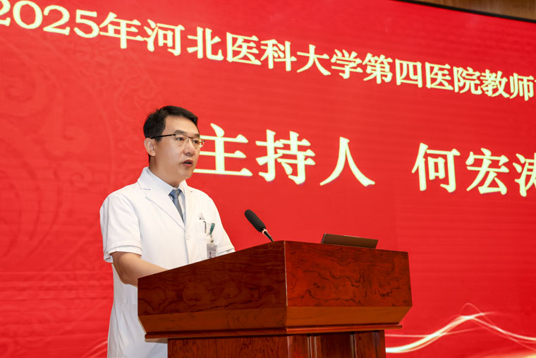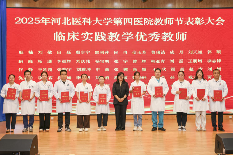 学校党委副书记武宇明代表学校党委,向受到表彰的教师先进集体和个人致以热烈的祝贺。当前是国家“十四五”规划收官之年和“十五五”规划谋篇布局之年、是教育强国建设全面布局、高位推进之年,也是学校全面深化综合改革、全力推进学校高质量发展的关键之年,她对全院教师提出三点希望:一做胸怀“国之大者”的强国之师,传承医学精神,培育卓越医学人才,为教育强国、健康中国建设作出医大贡献;二做矢志躬耕教坛的强教之师,持续学习、创新教学,培养学生解决实际问题的能力,成为学生求知的引路人;三做笃志传承薪火的强校之师,不断提升医院的核心竞争力和社会影响力,加强师资建设,夯实医院与学校长远发展的人才基础。