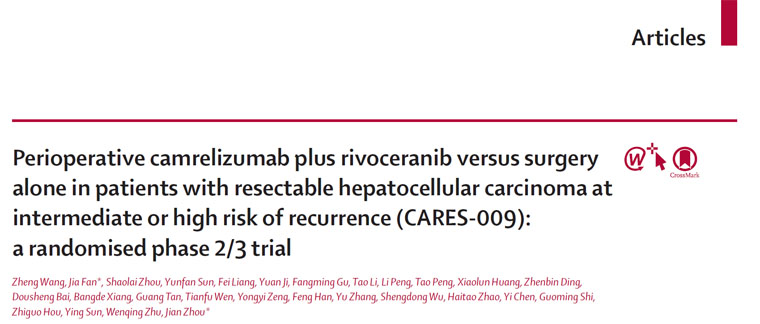 CARES-009研究聚焦于可切除但伴中高危复发风险的肝细胞癌患者,探索在围手术期采用“卡瑞利珠单抗联合阿帕替尼”(“双艾”方案)的“新辅助+手术+辅助”的“三明治”式治疗模式。研究结果显示,与单纯手术相比,“双艾”方案显著延长患者的中位无事件生存期(EFS),从对照组的19.4个月提升至42.1个月,疗效实现翻倍。这一突破性成果为全球肝癌患者提供了全新治疗选择,有望推动国际临床实践指南更新。