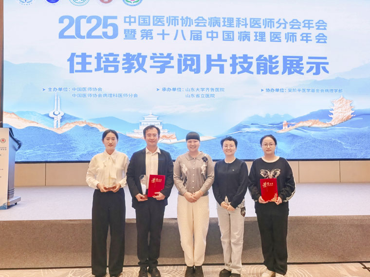 近日,2025年中国医师协会病理科医师分会年会暨第十八届中国病理医师年会在济南落幕。我院临床病理科专业基地受邀进行现场展示,荣获“最佳示范教案”与“教学阅片潜力示范精品课程”两项荣誉。同时,基地投稿论文《“四轮驱动,协同跃迁”临床病理科住培培养体系构建》成功入选年会优秀论文。