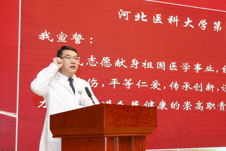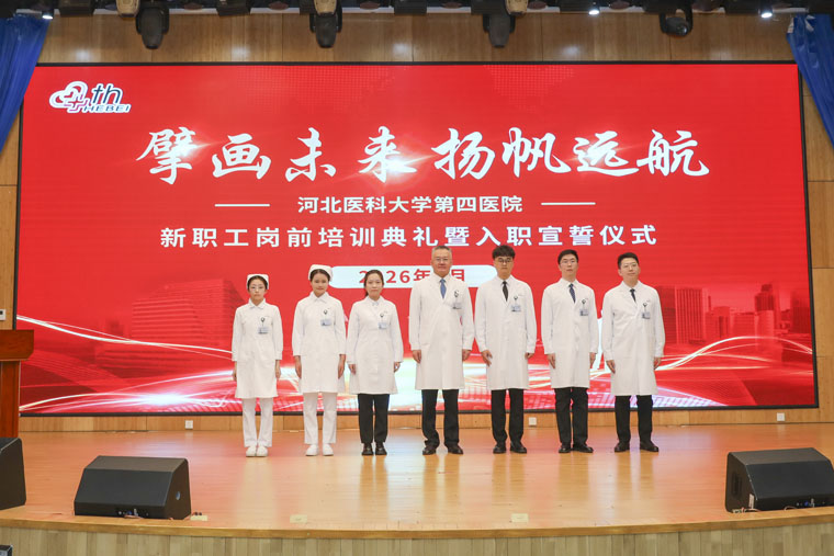 在宣誓环节,常务副院长何宏涛带领全体新职工高举右拳,庄严宣誓:“我志愿献身祖国医学事业……” 铮铮誓言响彻全场,既彰显了新职工对医学事业的忠诚担当,更传递着对生命的敬畏与守护之情。宣誓完毕,现场展播往届新职工微视频大赛优秀作品,让新职工们直观感受医院的文化氛围与青年人才的奋进风采。