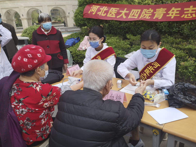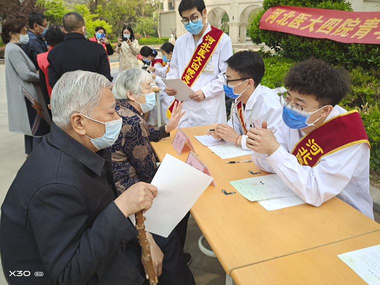 在全省“寸草心爱老敬老行动”集中服务日到来之际,按照上级团组织的统一安排,4月10日,我院团委组织15名专硕规培医师及在院实习医学生,赴石家庄市长安区荣景园小区开展青年志愿者“寸草心爱老敬老”健康宣教活动。
